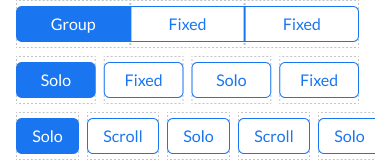 **Solo** - A grouping of solo toggles. An example of this could be different filters on a search, where each toggle is a different filter type (price, weight, rating, etc.)